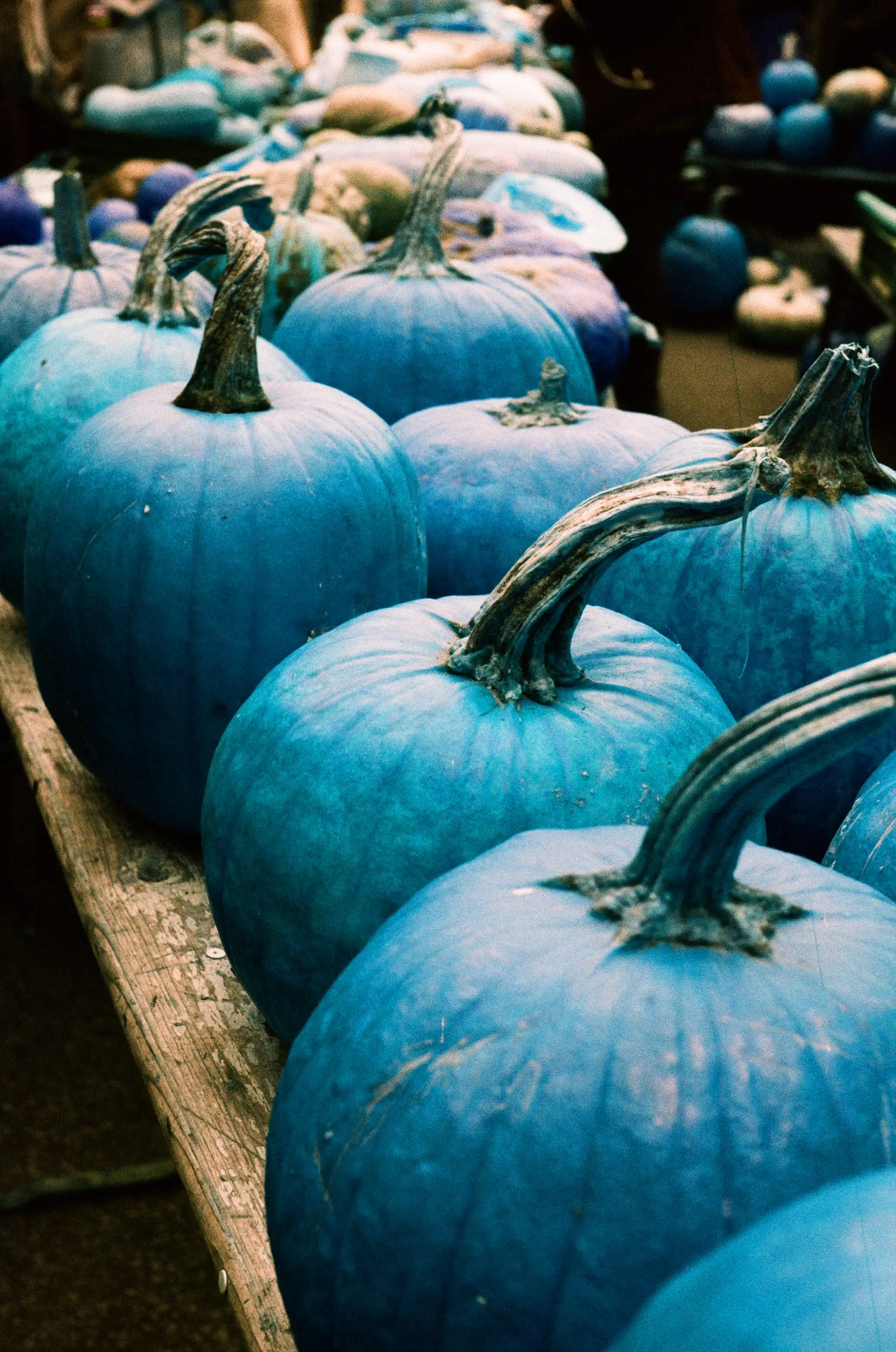 It’s astonishing how many different pumpkin varieties exist, with colors ranging from almost white to orange, red, deep green, and even blue - as I recently learned. The pumpkins in my photo aren’t actually Blue Jarrahdale pumpkins, though; their blue hue comes from Lomochrome Turquoise film, which gives everything a surreal twist.