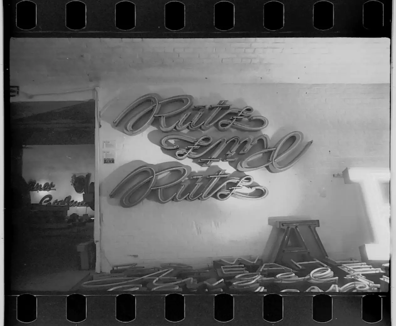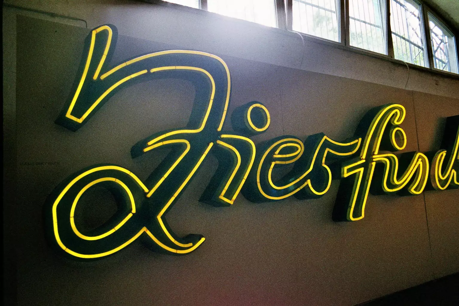 Despite all that, it’s fascinating to see the old fonts and typography. For some neon signs, it’s a trip back to my childhood - especially the Zierfische neon sign that once hung at Frankfurter Tor. The font is based on the handwriting of the script and advertising painter Manfred Gensicke, who also developed the sign2. I saw it often and really liked it, especially in the evenings. In 2009, the ornamental fish shop closed and the neon sign was removed. The Buchstabenmuseum e. V. acted quickly and saved it. It feels good to see it still shining