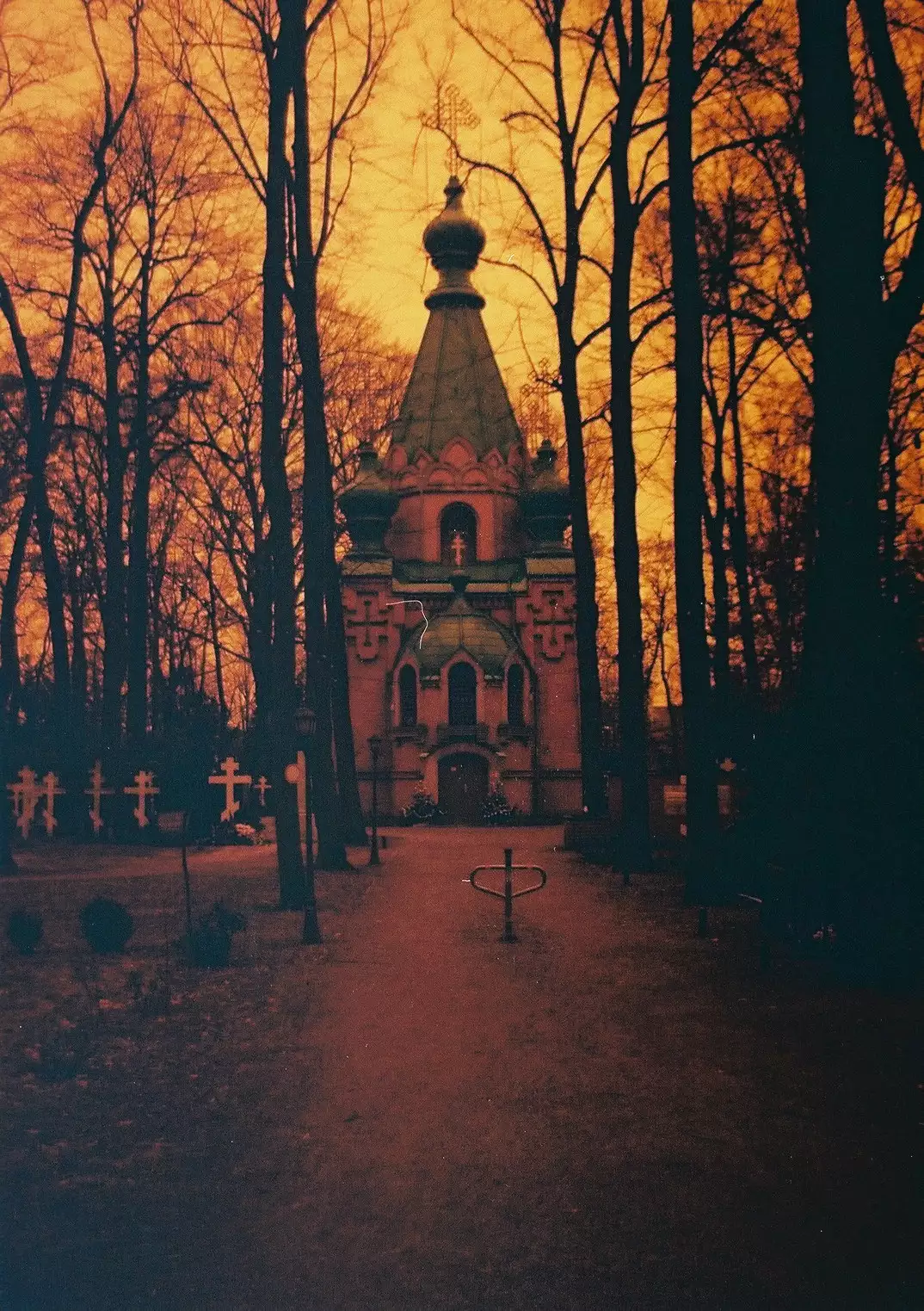 The initiative for the cemetery goes back to the “Bruderschaft des heiligen Fürsten Wladimir,” a brotherhood that is still active today. They bought the property for 30,000 marks in 1892, at a time when the Russian community in Berlin was growing. In addition to the cemetery and chapel, the brotherhood erected several buildings, including greenhouses, a typesetter’s workshop, and a library.2 At the center of the graveyard stands the St. Constantine and Helena Church, built in 1894 as a replica of Moscow’s St. Basil’s Cathedral. The chapel once housed precious icons, but these were lost through robbery. I haven’t seen the chapel yet, but I’ve read that it has a beautiful iconostasis - maybe I’ll get to see it someday.