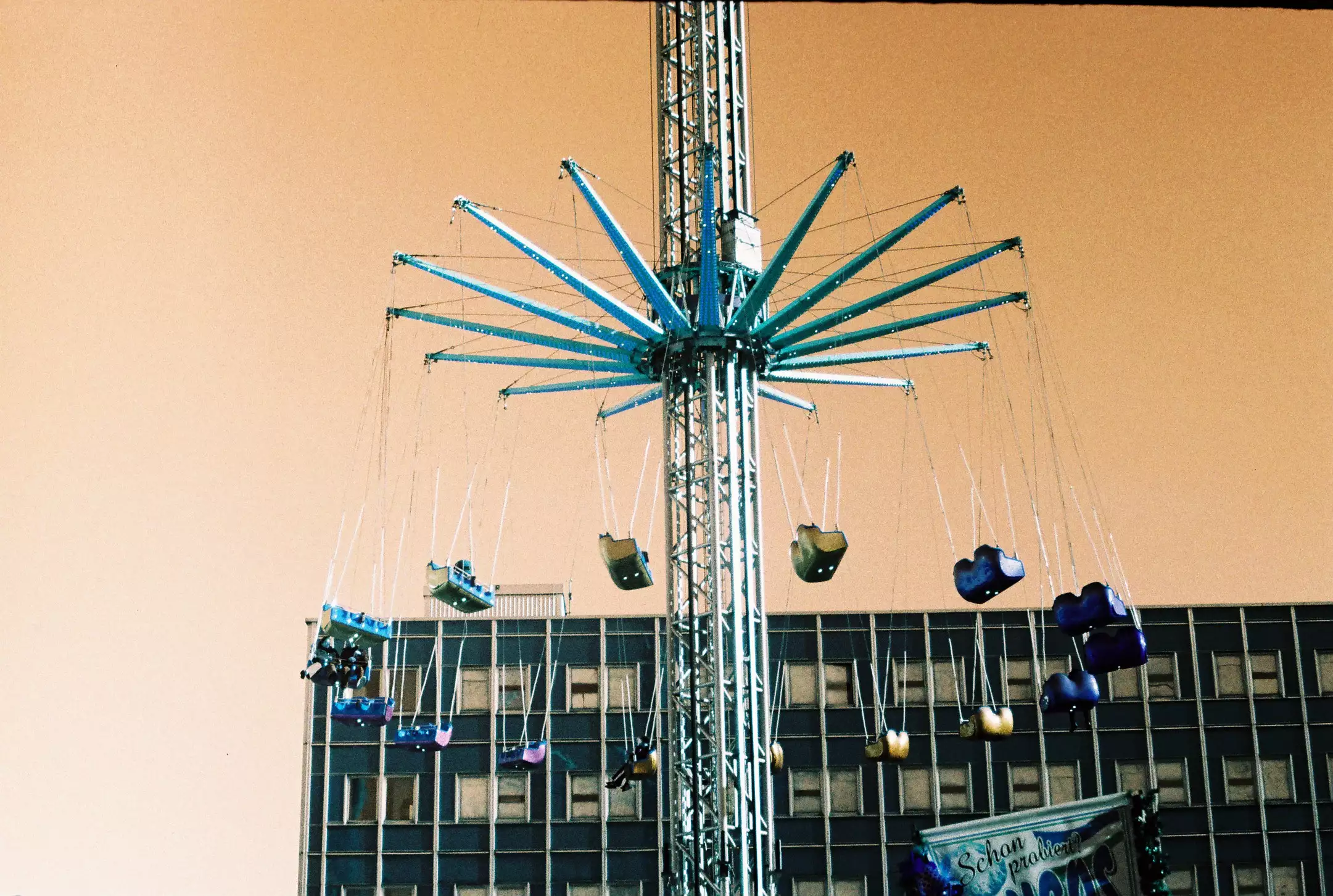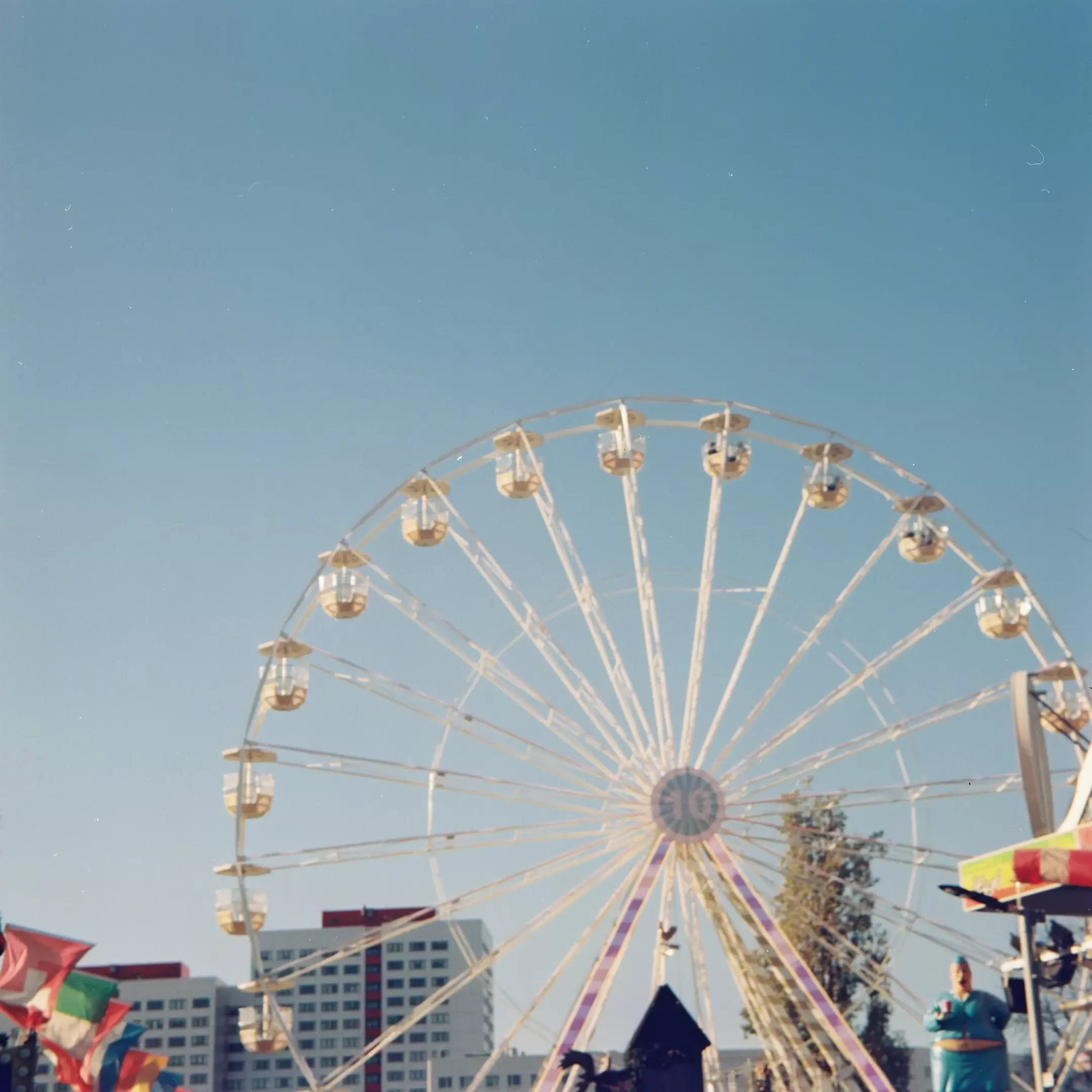 At least the spectacle is over by 9pm, and the lights vanish again. It’s a strange scene, and I took the opportunity to snap some photos of the fair set between the Plattenbauten.